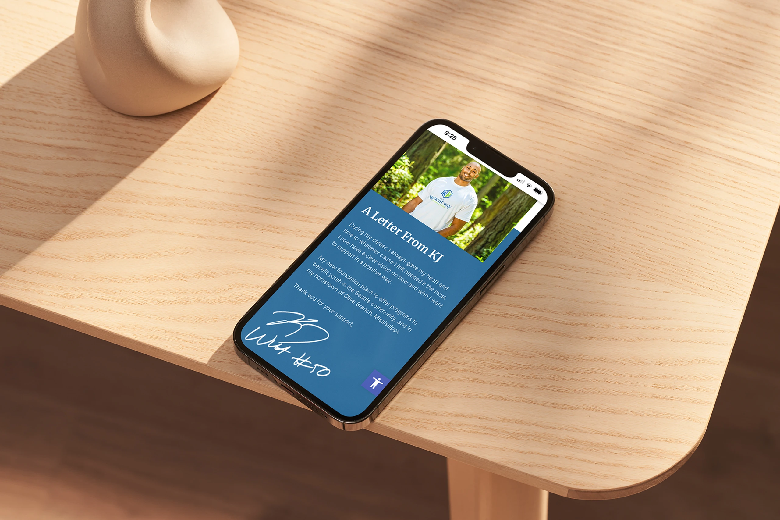 We designed and developed a site with clean, approachable layout and content-first structure. Key sections include mission & “Investing in Our Youth,” “A Letter From KJ,” and their “Partners.” We made sure donating, getting involved, and understanding their programs happens naturally and without friction. The site is built responsive and optimized to look great across devices—supporting both visitors eager to learn and community members ready to engage.